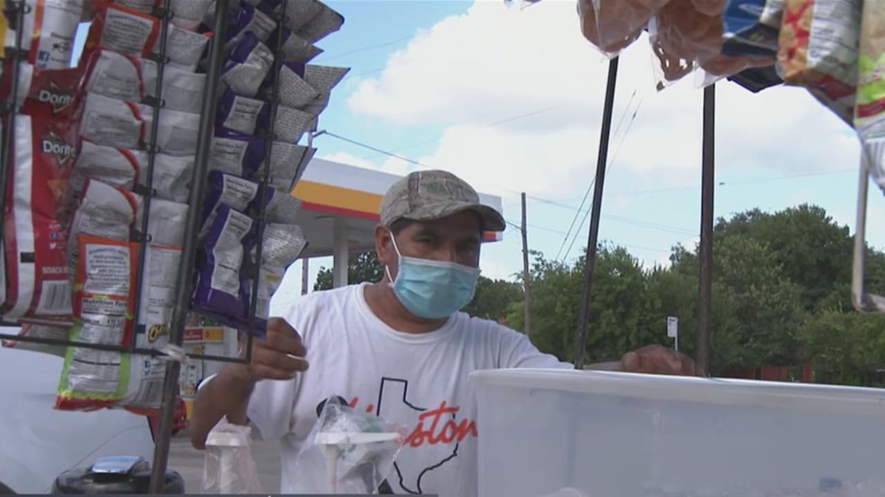 Almaraz, ya tiene 10 años trabajando en las calles de este vecindario en Houston y dice sentirse agradecido de estar con vida pues sabe que otros vendedores ambulantes que tienen que exponerse en las calles no han corrido con la misma suerte como Adelaido Berna Beurias de Austin, asesinado mientras vendía paletas.