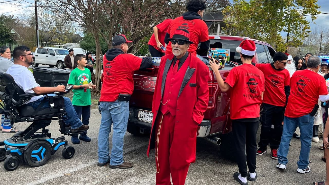 Pese a sus recientes problemas de salud, Richard Reyes salió a las calles de Houston cómo suele hacerlo en navidad desde hace más de 40 años. Vestido como Pancho Claus, una representación de Santa pero en versión latina, llevó regalos a cientos de niños de escasos recursos para darles alegría durante las fiestas.