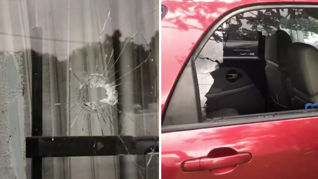 Un joven que caminaba por la calle recibió un disparó en la mano durante el tiroteo y los disparos impactaron al menos dos vehículos y la ventana de una casa, en donde dormía una mujer de la tercera edad.