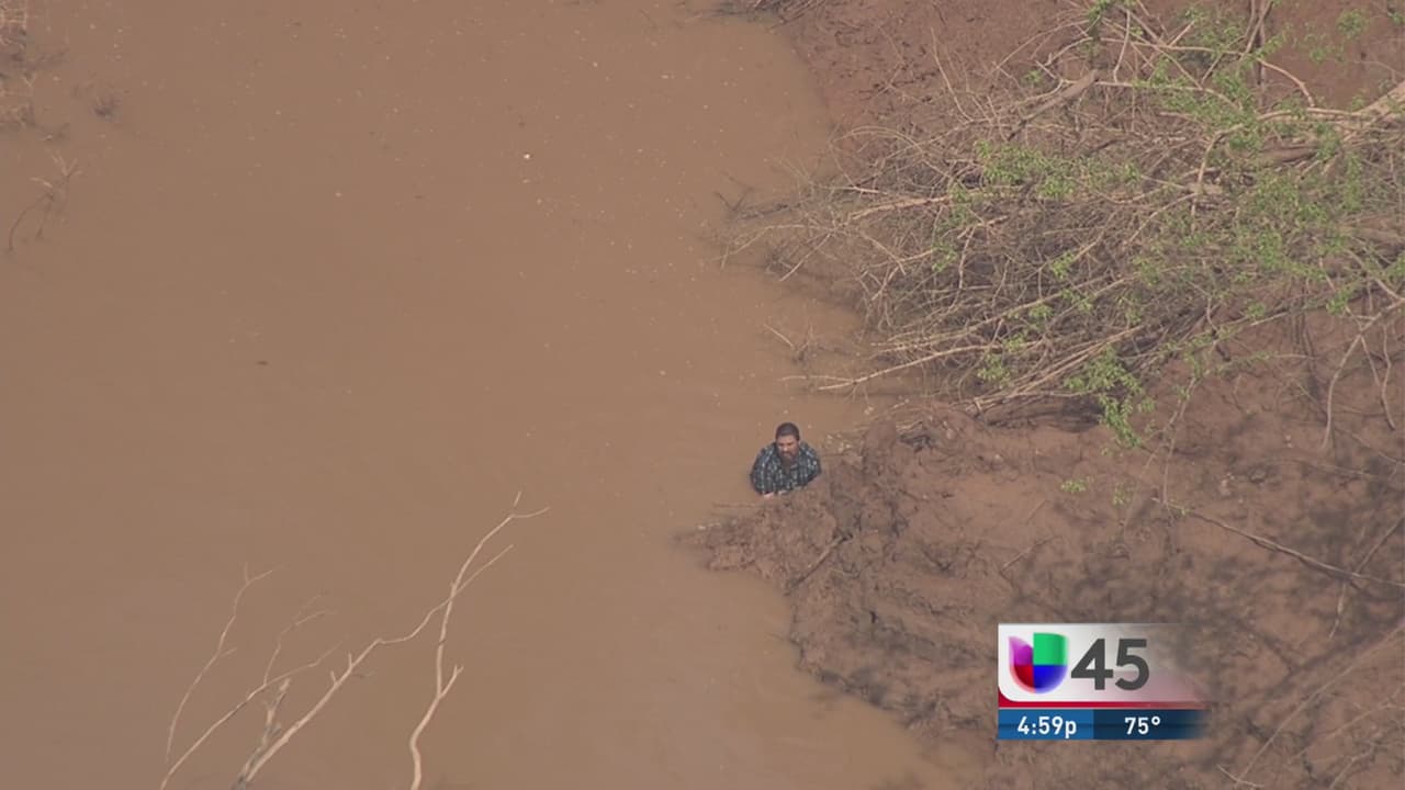 La policía trató de detener a un sospechoso tras un allanamiento y este emprendió la huida a alta velocidad en una camioneta pero no logró escapar, tuvo que se rescatado del río Brazos