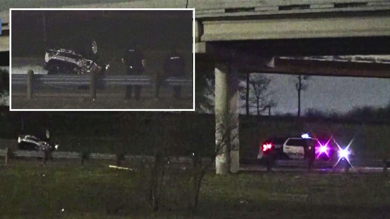 Persecución policial termina con dos sospechosos muertos tras volcarse su auto en la Gulf Freeway