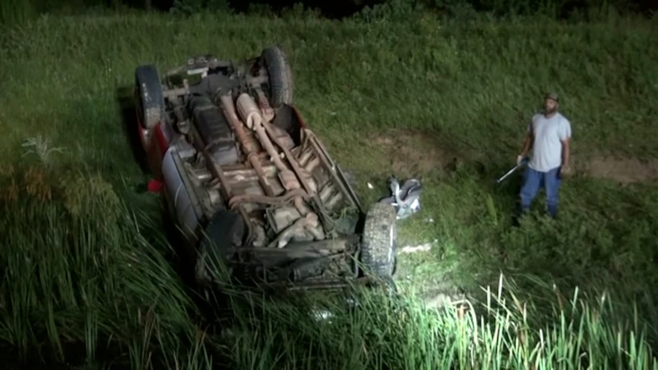 El vehículo salió de la carretera 1485 cuando el conductor perdió el control y terminó estrellándose en una zanga en el US 59.