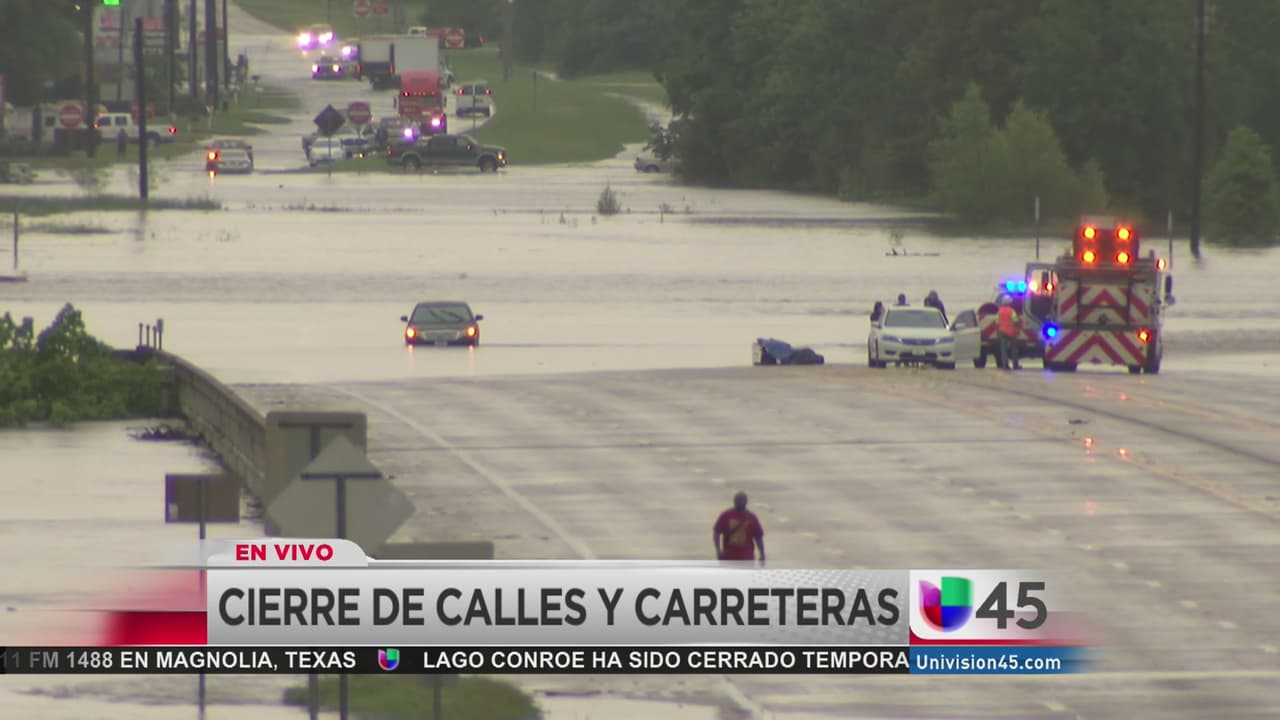 Poblados al norte de Houston están bajo el agua y hay decenas de vías cerradas