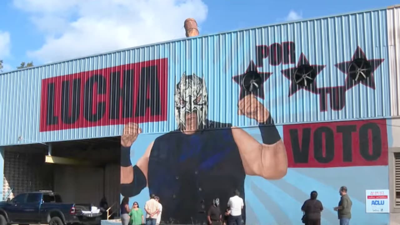 A medida que se acercan las elecciones generales del 5 de noviembre, son cada vez más las organizaciones que están promoviendo la importancia del voto a través de diversas estrategias, como el arte. En el East End, se expone un mural en el que se lee 'Lucha por tu voto’, que invita a la comunidad del área de Houston a ejercer su derecho. La persona que aparece en la obra es José Luis Ponce, conocido como ‘Black Star’, quien por años ha promovido la lucha libre mexicana en la región.