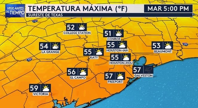 Gastón Heredia, jefe de meteorología, explica que el día va a estar muy frío en el área de Houston, tanto así que las máximas estarán sobre los 55°F.