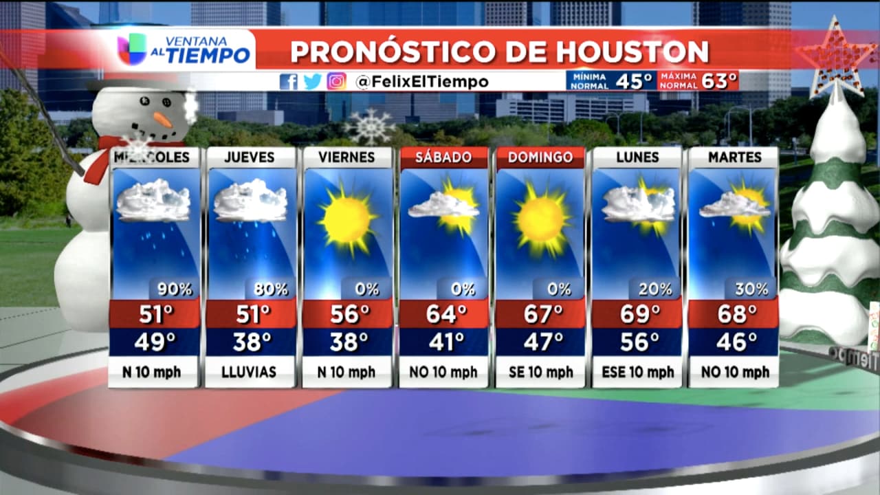 Se pronostican fuertes lluvias este miércoles en Houston y temperaturas en los 50 grados Fahrenheit