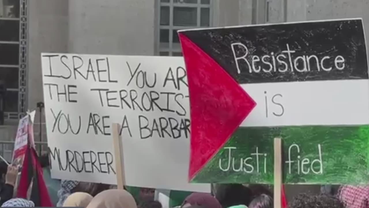 Protestan en el centro de Houston por los recientes ataques de Israel a Gaza