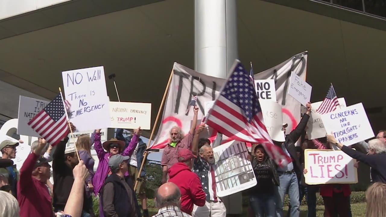 Protestas en Houston a favor y en contra de la declaración de emergencia nacional de Trump