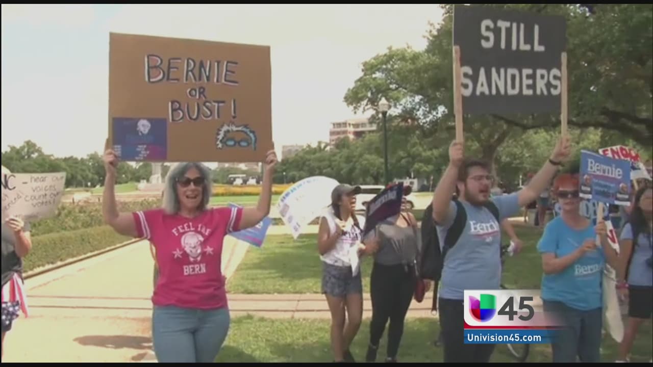 En diversas partes del país, incluyendo Houston, partidarios de Bernie Sanders han protestado antes de la Convención Demócrata.