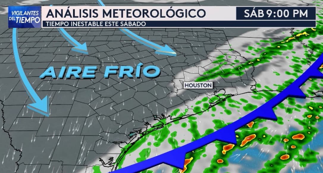 Gastón Heredia, jefe de meteorología de Univision 45, explica que a partir del sábado en la tarde se espera el paso de un frente frío por el área de Houston que puede dejar tormentas e incluso granizo.