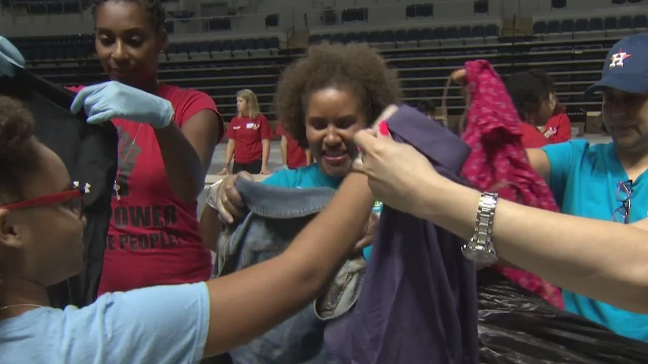 Voluntarios del Distrito Escolar Independiente de Houston han recibido donaciones desde zapatos, ropa, cuadernos, y útiles escolares; todo para poder ayudar a las familias damnificadas. El evento se lleva a cabo en el Delmar Fieldhouse.