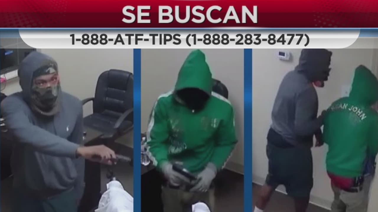 ATF, la agencia que regula armas, tabaco y explosivos en Houston; y la organización Crime Stoppers ofrecen una recompensa de hasta 15,000 dólares por información que permita la captura de peligrosos delincuentes. Se trata de los responsables de robar armas de fuego y joyería de la tienda de empeño Airline, ubicada en Houston. Los delincuentes fueron captados por la cámara de vigilancia del lugar.