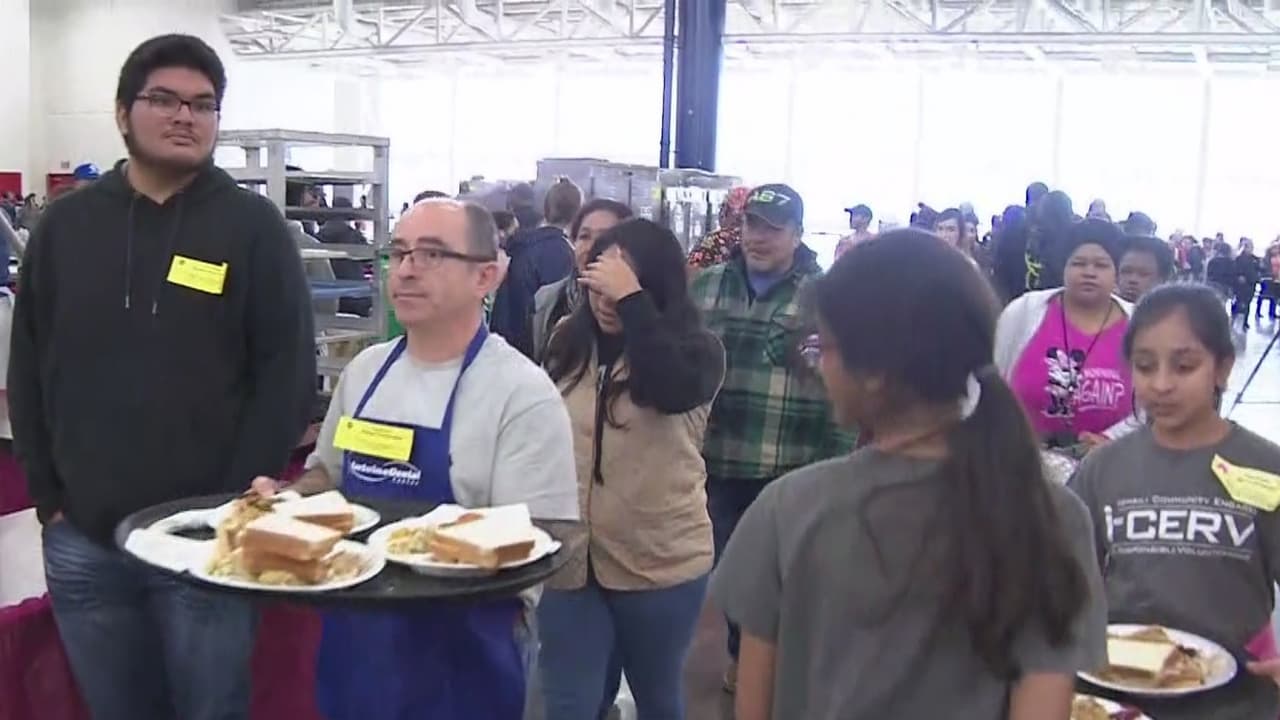 Reparten comida y ropa en el centro de convenciones George R. Brown de Houston