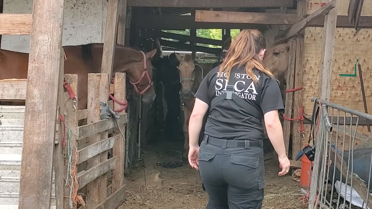La Sociedad Protectora de Animales de Houston (SPCA) y oficiales del precinto 1 del condado Harris ejecutaron una orden de incautación de 8 caballos en la cuadra 3600 de Jipsie Ln., donde encontraron a los animales necesitando atención médica, no tenían comida ni agua limpia.