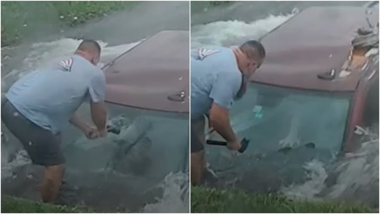 Rescatan al hombre tras quedar atrapado dentro de su auto por las inundaciones