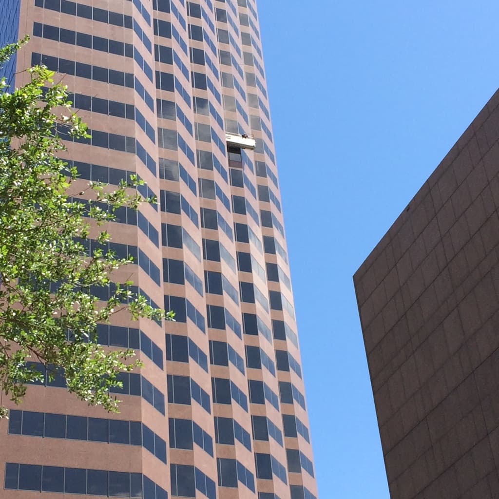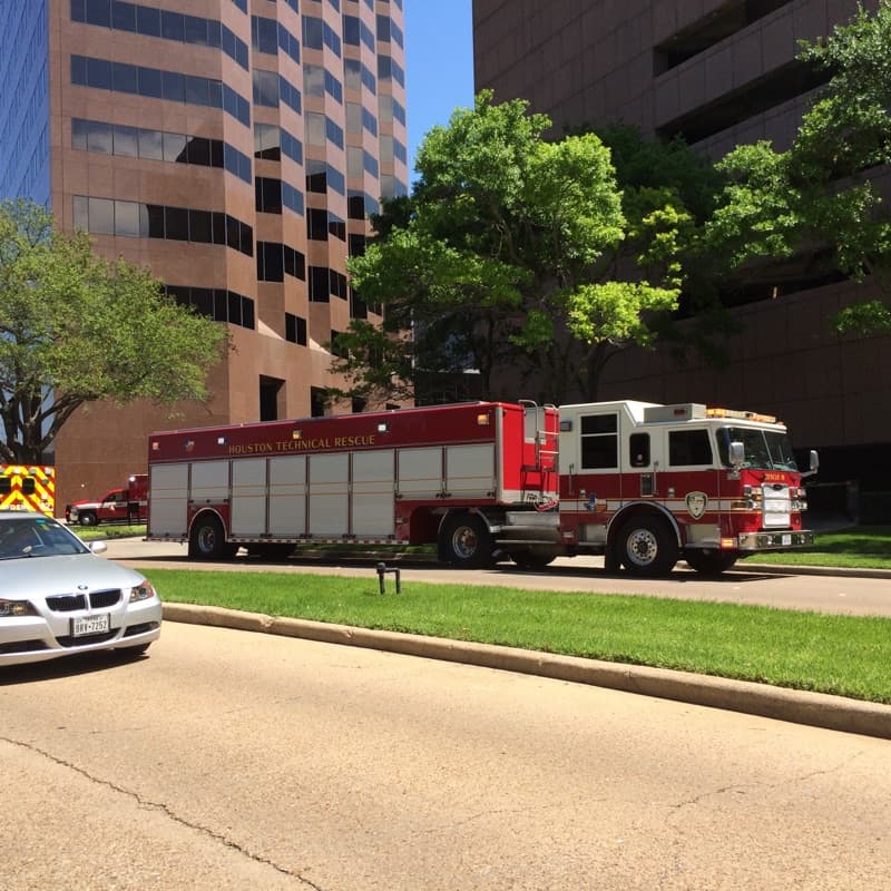 Rescatistas del Departamento de Bomberos de Houston lograron rescatar a dos trabajadores que estaban atrapados en un andamio en las alturas de un edificio del área de Galleria, en Houston.