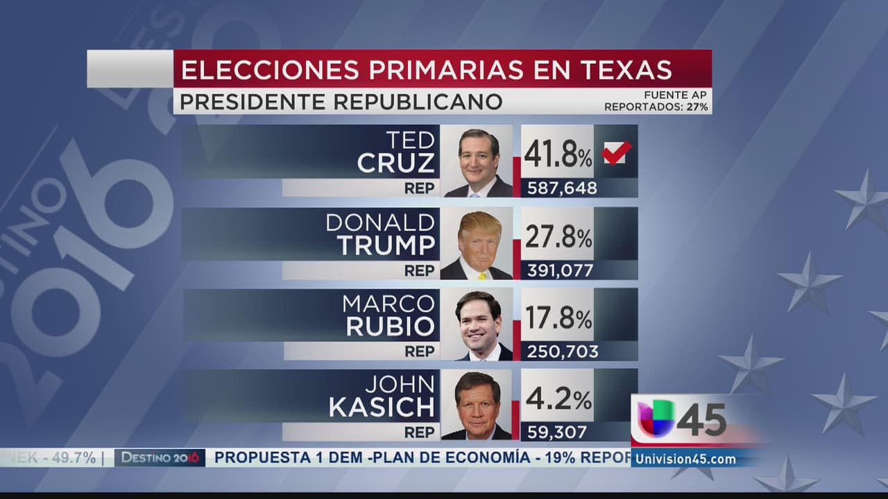 Como se había anticipado, Ted Cruz salió triunfador en Texas por el partido republicano y Hillary Clinton por el partido demócrata