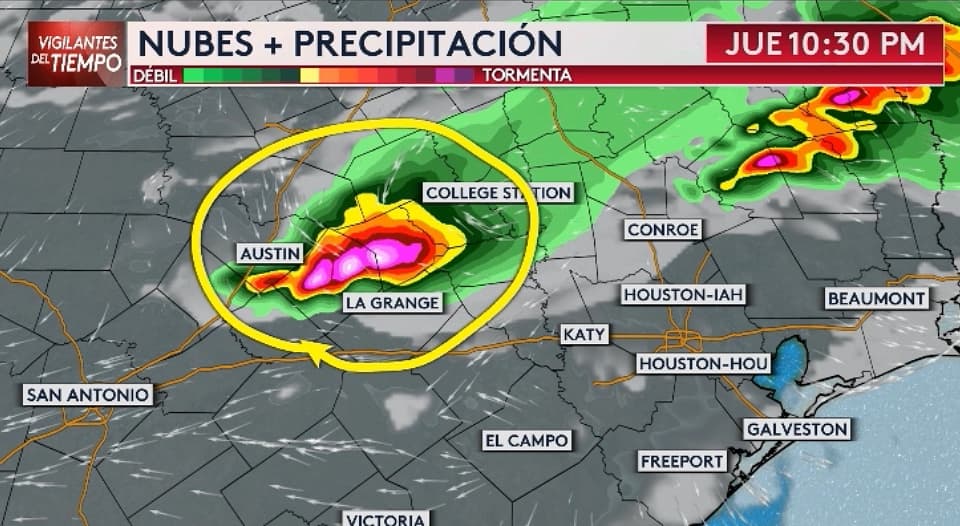 Gastón Heredia, jefe de meteorología de Univision 45, aclara que entre las 5pm y medianoche hay posibilidad de ver granizo y lluvias excesivas.
