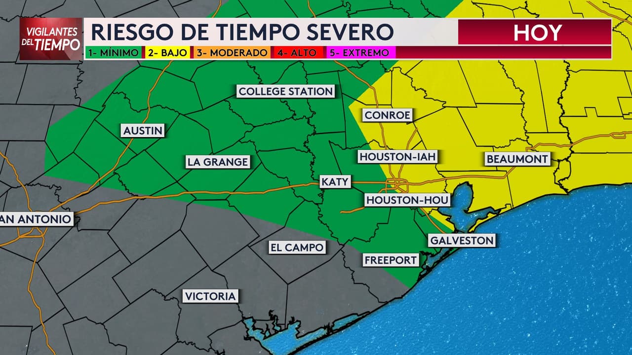 Las áreas con mayor potencial de tornados incluyen el este y norte de Houston: The Woodlands, Pasadena, Liberty, Cleaveland y Livingston. Se espera que el frente frío se vaya del área de Houston a partir de las 2pm.