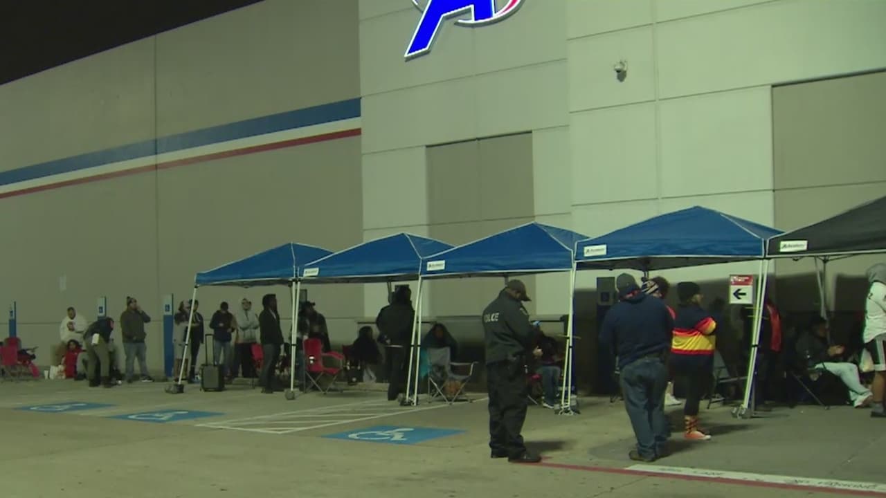 Decenas de personas se han congregado afuera de la tienda Academy Sports, ubicada en el suroeste de Houston, para comprar la mercancía de campeonato en caso de que el conjunto naranja se corone como el ganador de la Serie Mundial.