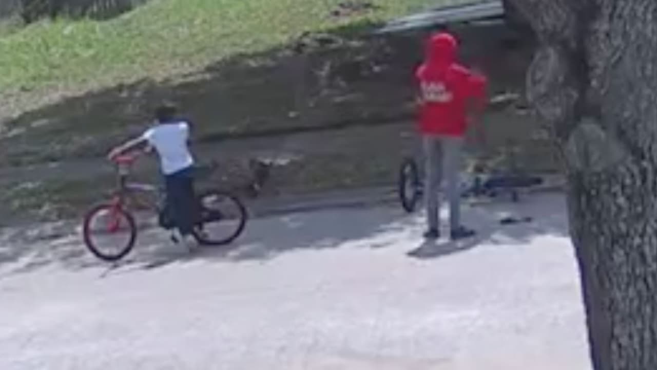 El video muestra a los menores alejarse en bicicleta y volver 10 minutos después con guantes quirúrgicos.