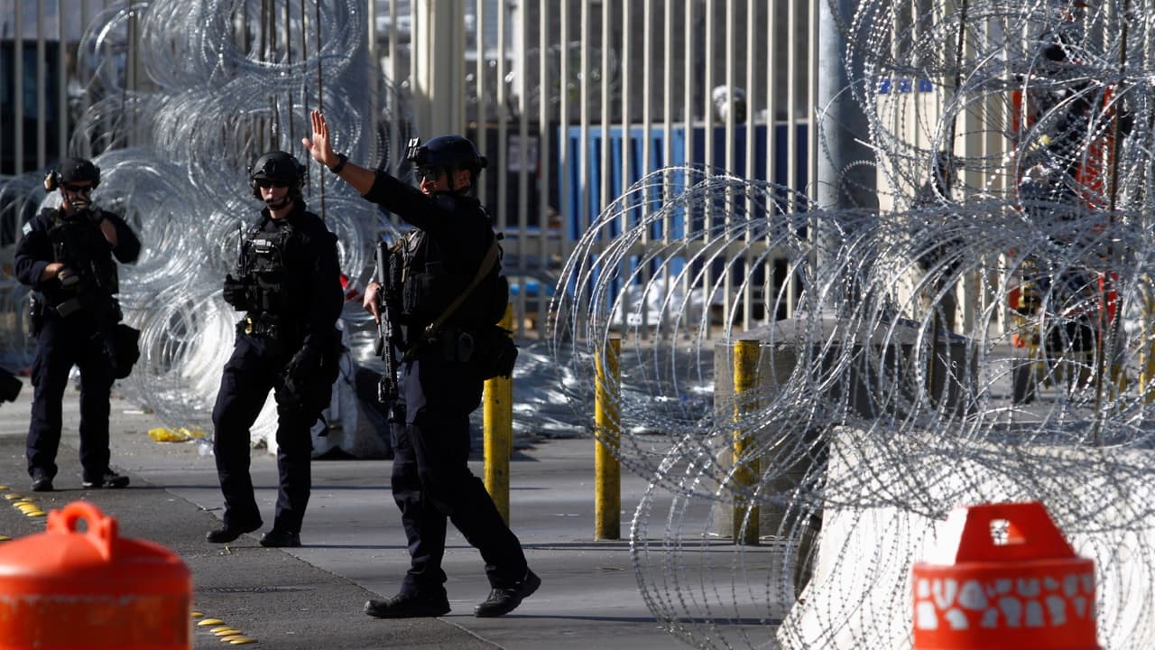 Con barricadas de alambres de púas, la Patrulla Fronteriza intenta detener el cruce de migrantes