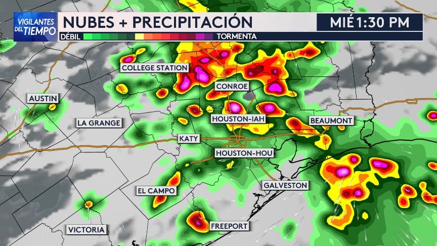 El jefe de meteorología de Univision 45, Gastón Heredia, explica que lo más fuerte se espera durante la tarde del miércoles. Hay riesgo de tiempo severo y no se descartan inundaciones y fuertes ráfagas de viento.