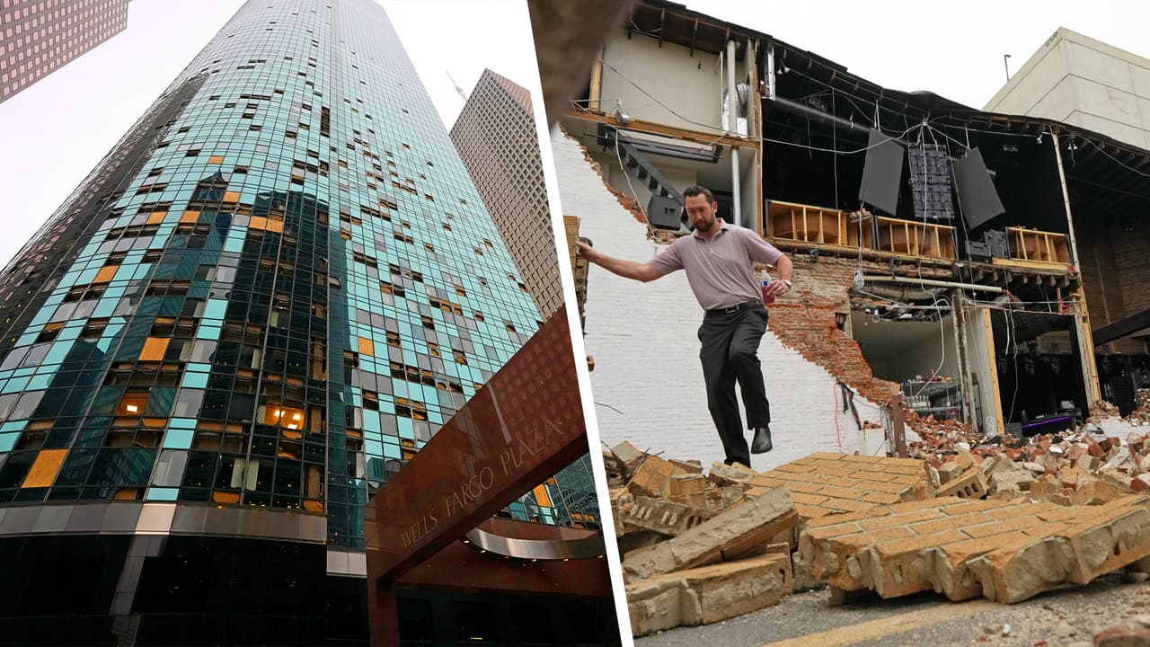 La zona metropolitana de Houston tenía múltiples árboles caídos, edificios dañados en sus cristales, e incluso derrumbes de ladrillos de estructuras en la ciudad.