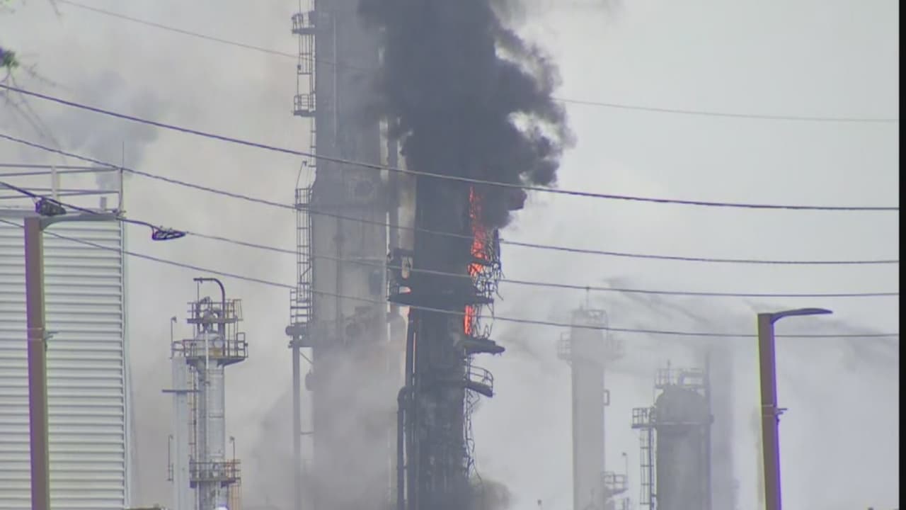 Siguen combatiendo el fuerte incendio en la planta de ExxonMobil, mientras trabajadores comienzan a salir