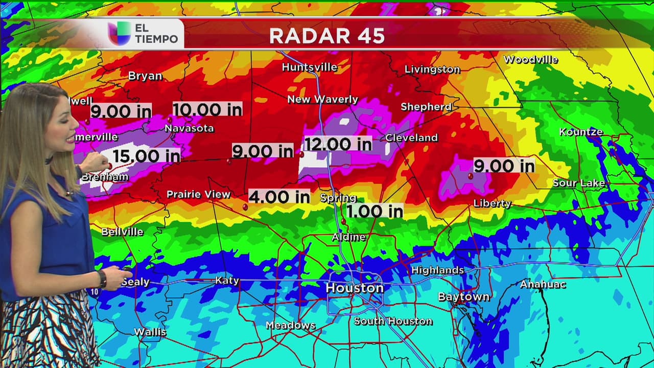 En las últimas 24 horas Brenham y Conroe tuvieron fuertes episodios de precipitaciones y los acumulados de agua lluvia oscilan entre las 12 y las 15 pulgadas.
