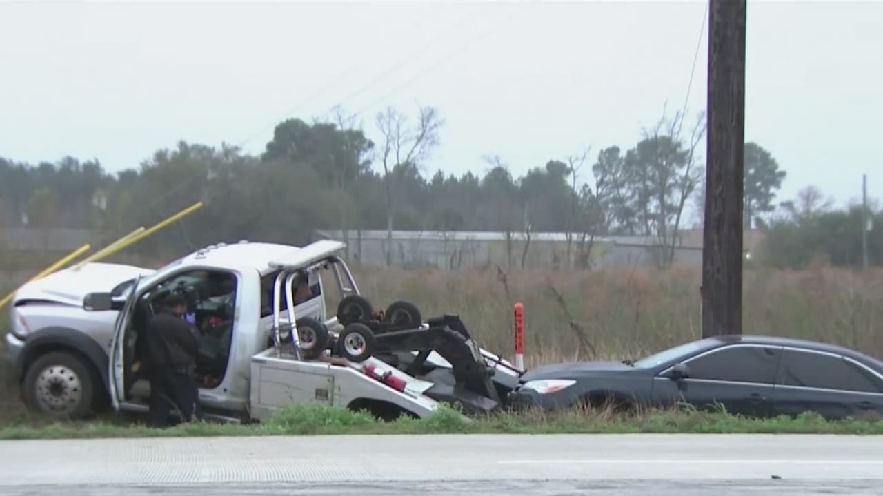 Más temprano, el sheriff Ed González informó que un gruero terminó volcado en una zanja al norte de Houston luego de que alguien le disparó.