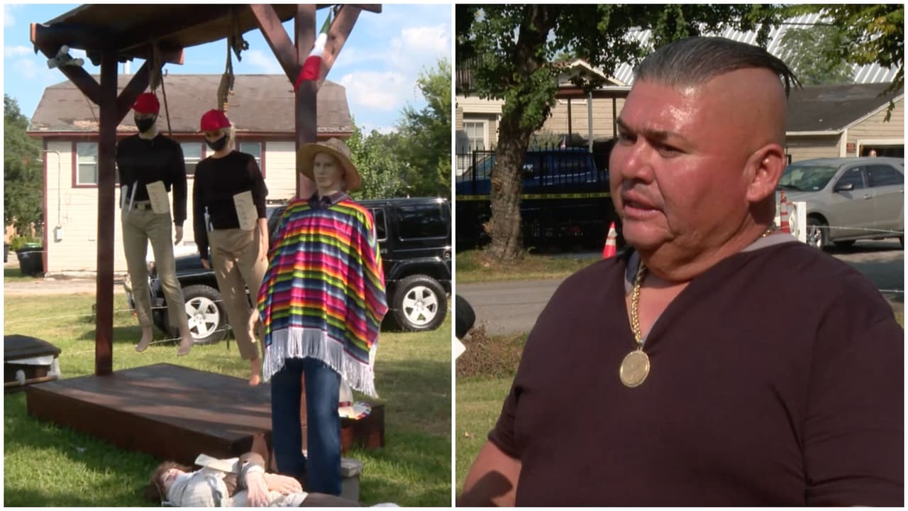 Una decoración de Halloween en Houston con maniquíes colgados generó polémica y amenazas contra su dueño, Marc Rodríguez, quien asegura ejercer su derecho a la libertad de expresión y teme por su hija de 5 años.