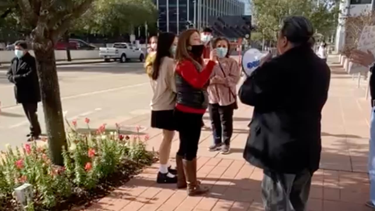 La manifestación se llevó a cabo fuera de una iglesia católica en el centro de Houston donde una feligresa que iba saliendo confrontó a los participantes.