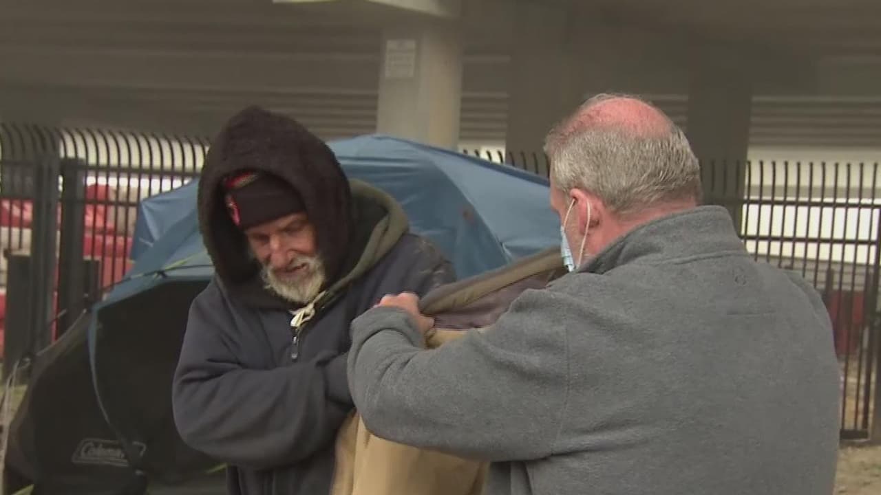 Tiempo invernal: Entregan a desamparados en Houston implementos para que se protejan del frío