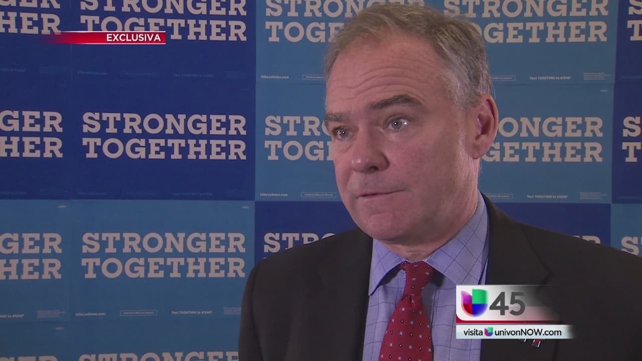 En entrevista exclusiva con Univisión Houston, el candidato demócrata a la vicepresidencia de EEUU volvió a ratificar el compromiso de Hilary Clinton con el tema de inmigración, educación y economía.