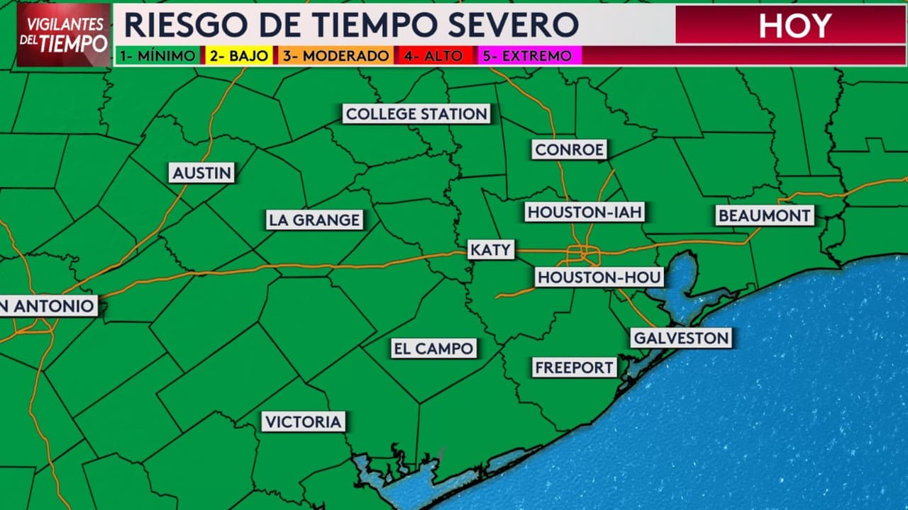 Las lluvias y tormentas avanzan hacia el área metropolitana de Houston y se espera que impacten la ciudad a partir de la 1pm, con ráfagas de viento superiores a 58 millas por hora, granizo y posible formación de tornados. El riesgo de tiempo severo se mantendrá hasta el jueves, con probabilidad de inundaciones durante toda la semana.