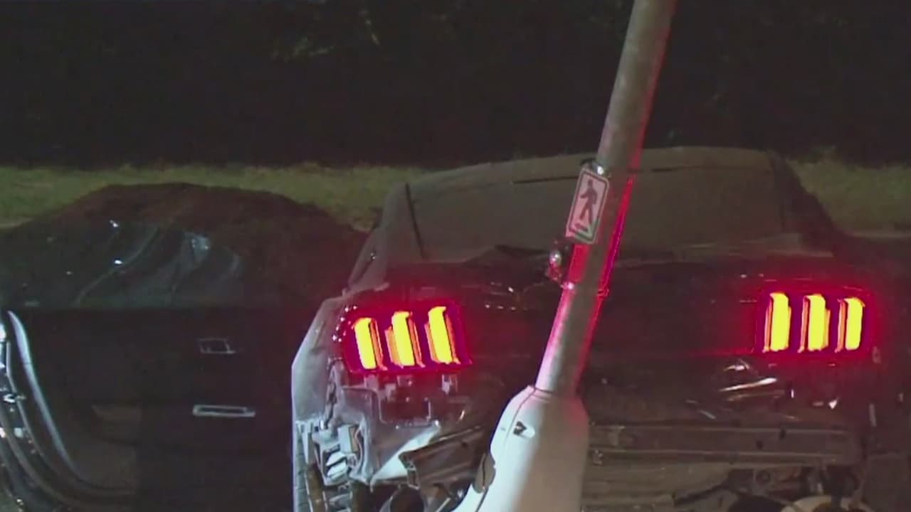 El Mustang se estrelló contra un poste en el lado noreste de la intersección de la vía y el conductor huyó de la escena, sin preocuparse por ofrecer ayuda a los atropellados, señaló Troyer.