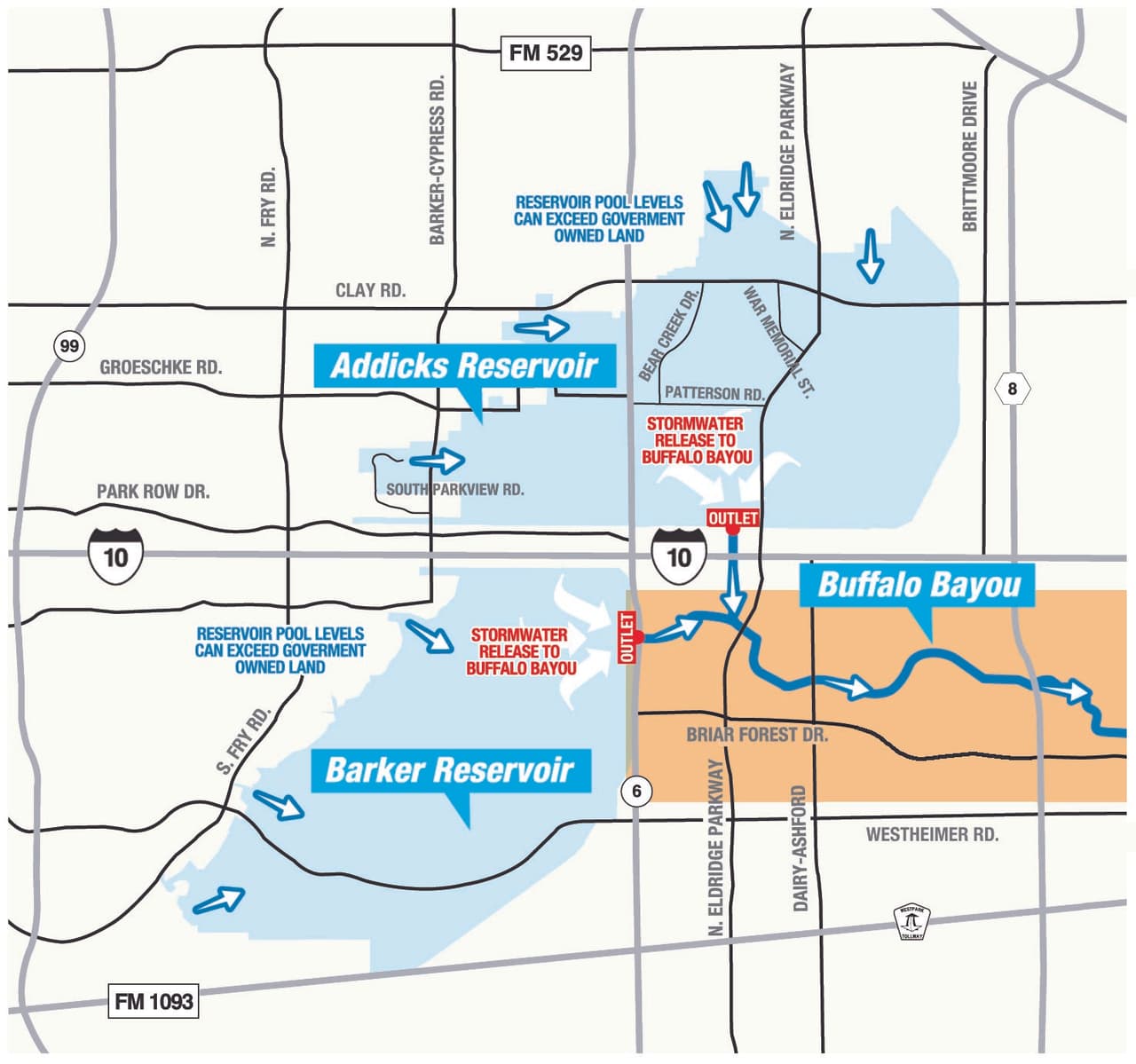 Un centenar de vecindarios adyacentes a las presas Addicks y Barker tienen orden de evacuación voluntaria