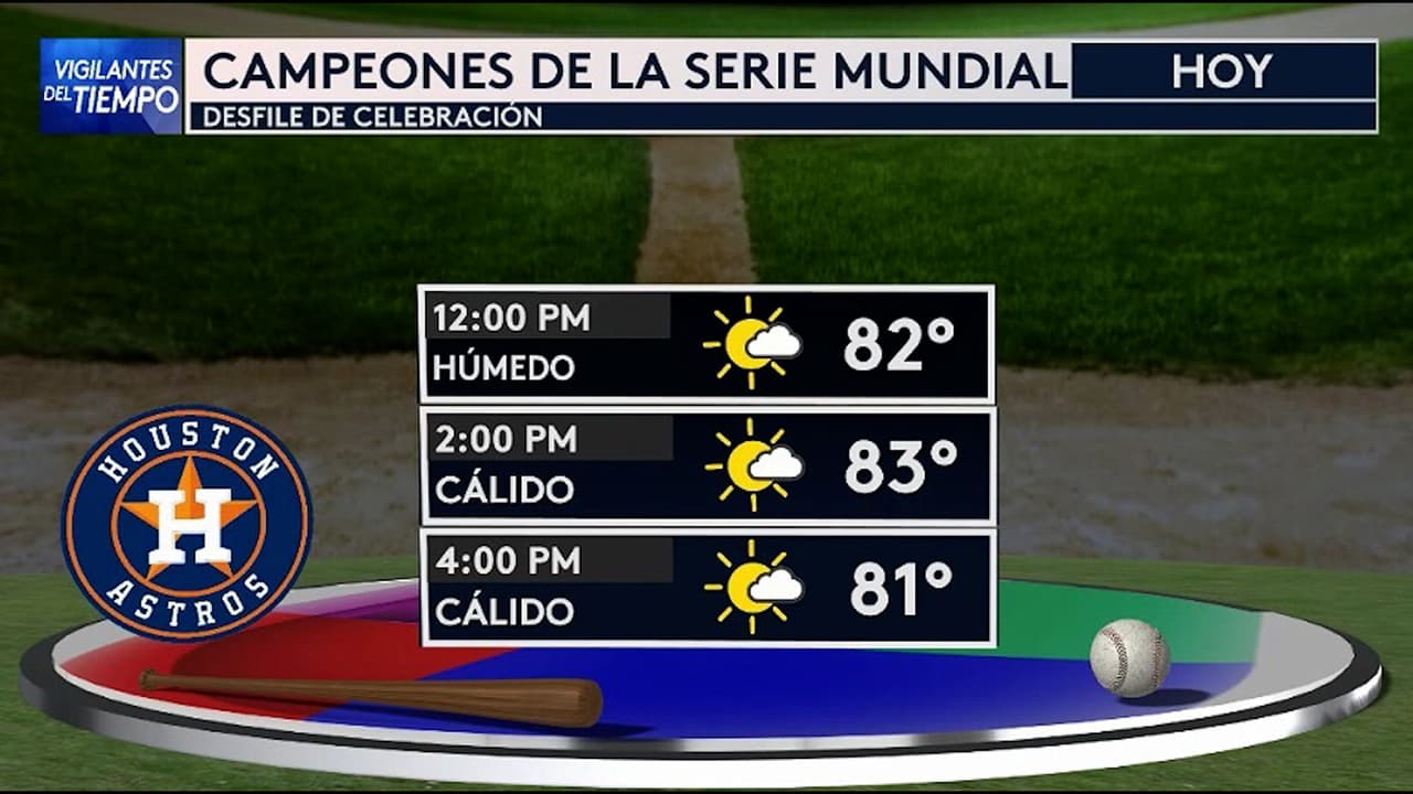 Gastón Heredia, jefe de meteorología de Univision 45, explica que aquellos que piensan asistir al desfile de los Astros, deben guardar la chamarra en la casa porque las condiciones del tiempo estarán muy agradables y no lloverá.