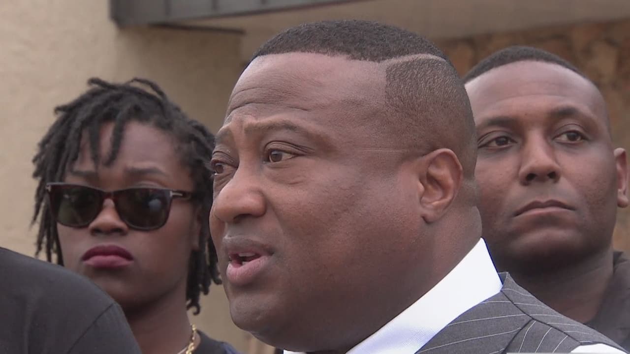 Las personas que acusan de fraude a al activista Quanell X se reunieron afuera de las instalaciones de la corte criminal del condado Harris para compartir con los medios sus denuncias.