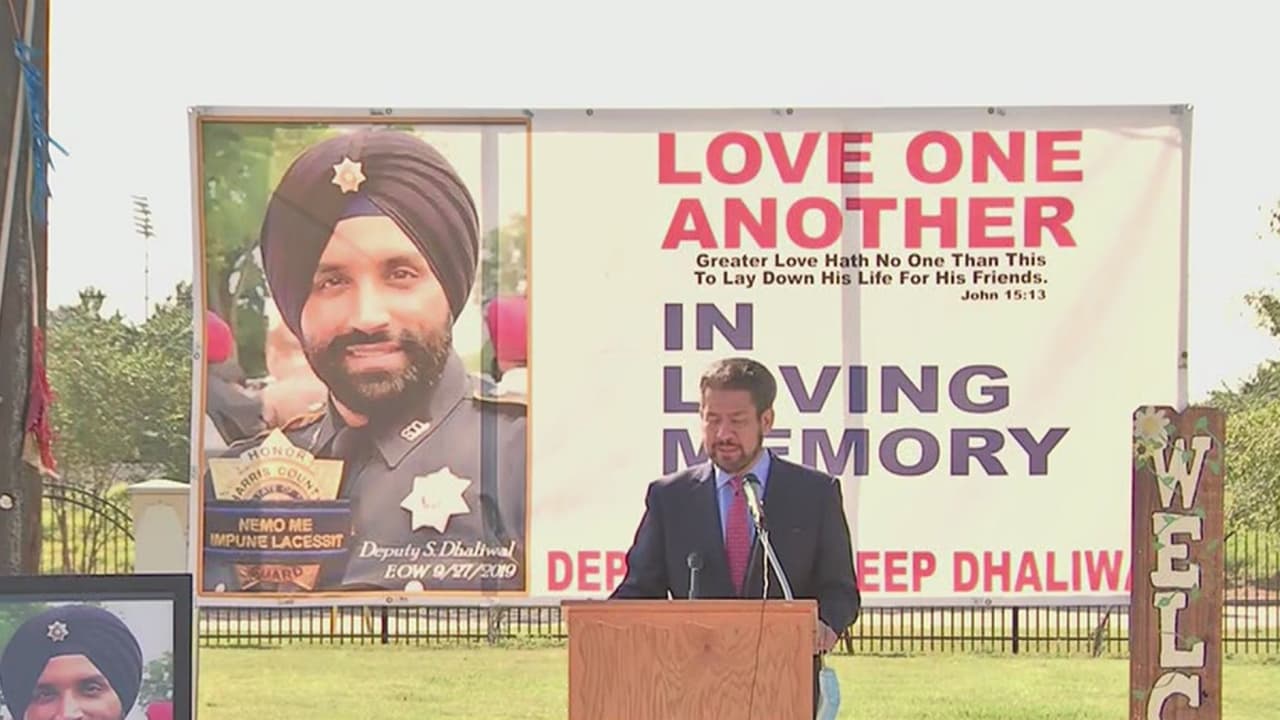 El uniformado Sandeep Dhaliwal prestó servicio a la comunidad por más de 10 años y perdió la vida el 27 de septiembre de 2019 durante una parada de tráfico rutinaria en el noroeste del condado de Harris. "Más de 100 personas transitan cada día por este sector y podrán saber quién fue Sandeep Dhaliwal. Esta es una muestra del reconocimiento que se está haciendo", precisó el jefe del alguacil, Ed González.