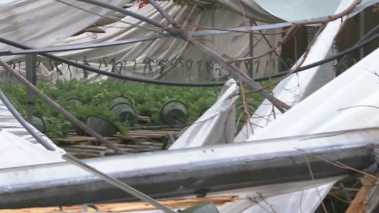 Un vivero ubicado en el suroeste de Houston sufrió daños severos tras los fuertes vientos