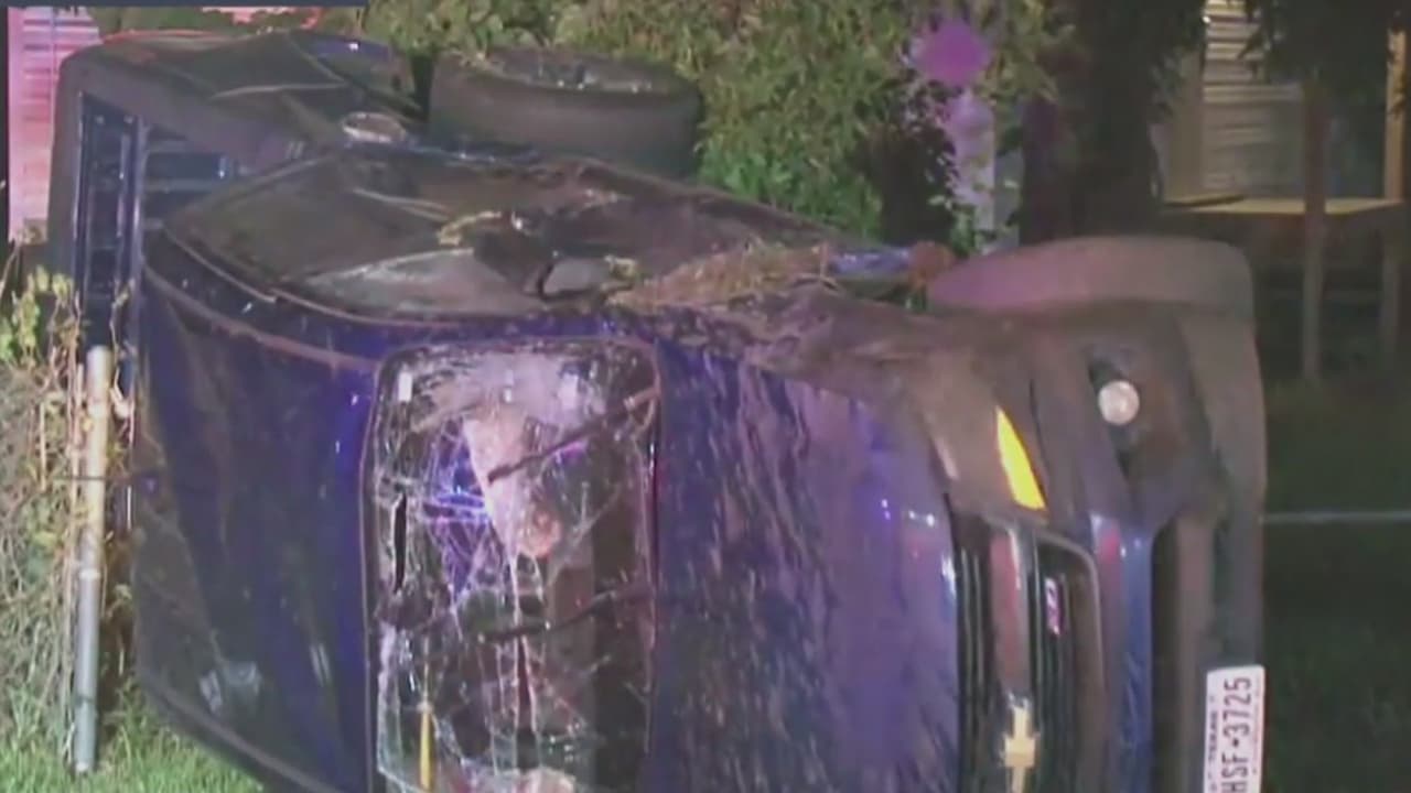 Una camioneta choca contra otro vehículo, cae en una zanja y daña el medidor de gas de una vivienda
