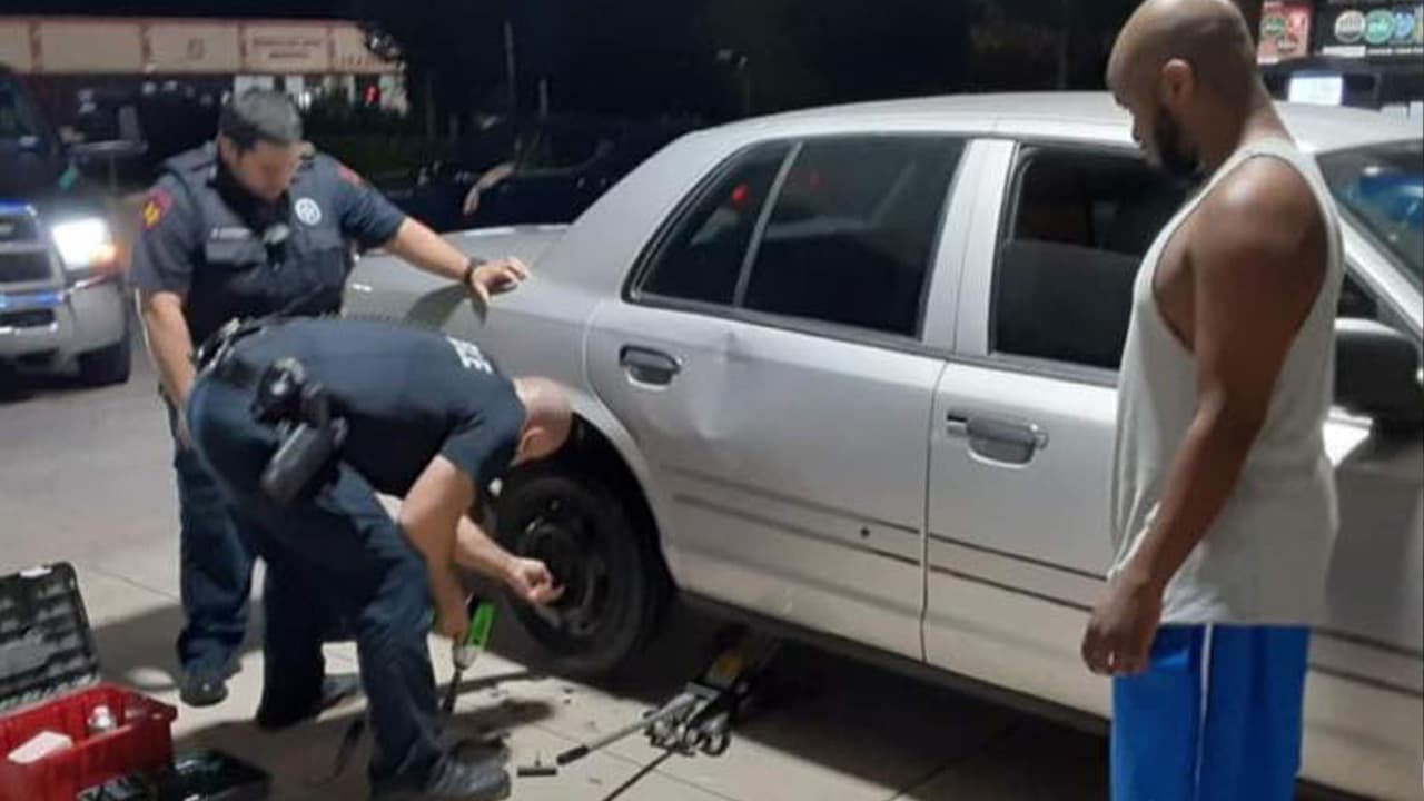 "Una imagen dice más que mil palabras”: Policía que ayuda a un hombre con una llanta ponchada