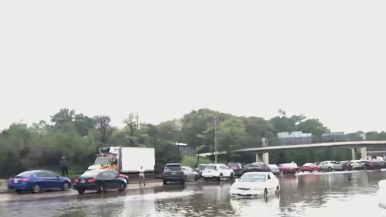 Una larga fila de autos varados y varias inundaciones, el panorama en la Interestatal 10 de Houston