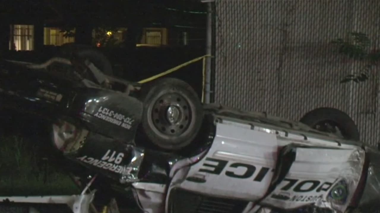 Una oficial se accidenta y el vehículo de la policía termina volcado en el noreste de Houston