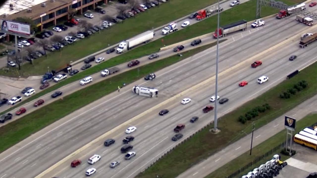 HOUSTON, Texas. – Un vehículo comercial se vuelca y provoca cierre de un tramo de la carretera 610 North Loop cerca de McCarty NB.