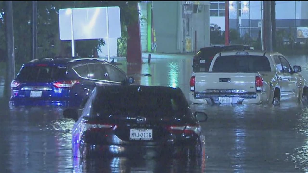 Vías inundadas y vehículos atrapados en el condado Harris por las lluvias relacionadas a la tormenta Beta