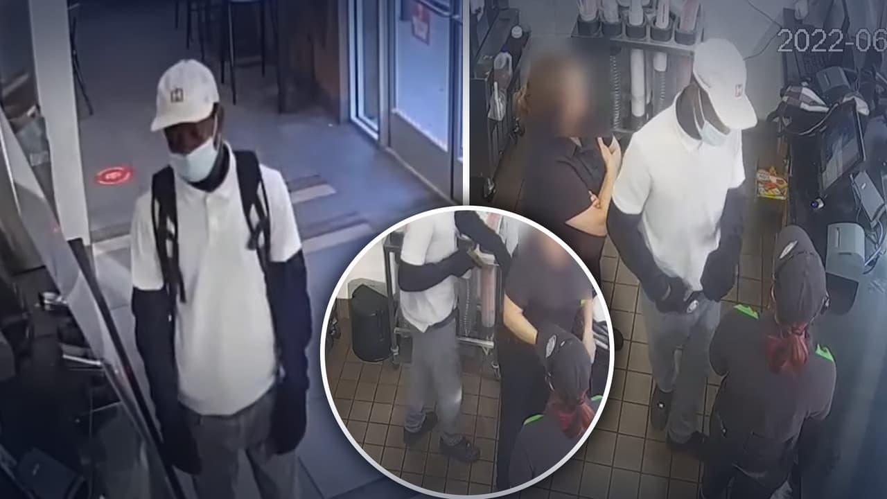 El sospechoso entró al restaurante de hamburguesas y actuó como si fuera a hacer un pedido, justo antes de encañonar a las empleadas y exigirles el dinero de la caja registradora.