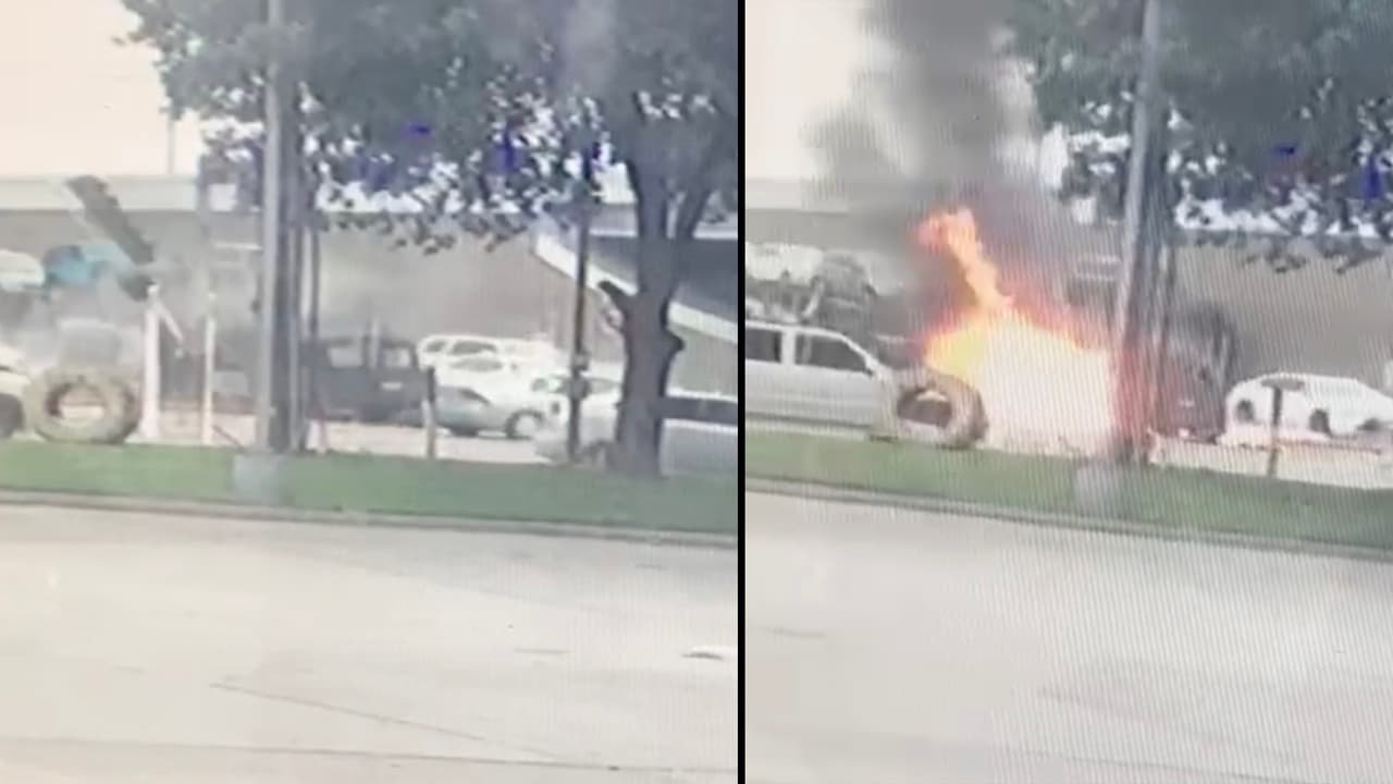 En el video se ve el momento en que el Gregory Smith, quien ha sido señalado de conducir en estado de ebriedad, estrella su vehículo contra una van negra que se prende en fuego.